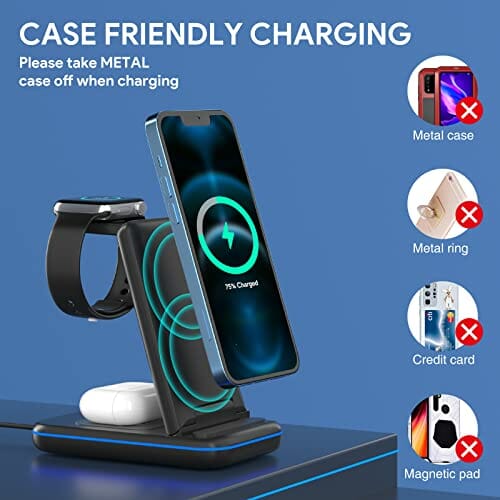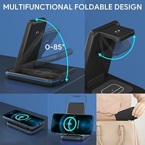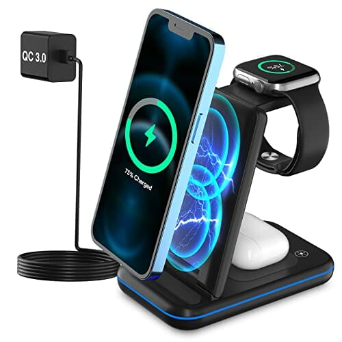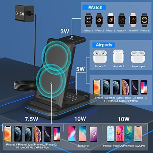 Bezprzewodowa ładowarka, 3 w 1, bezprzewodowa stacja ładująca 18 W, do iPh 13, 12, 11/Pro/mini/SE/11/X/XS/XR, ładowarka do iWatch i AirPods (czarna)