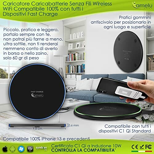 Bezprzewodowa ładowarka WiFi Bezprzewodowa Ładowarka Indukcyjna Certyfikat Qi C1 10W Pad Szybkie Ładowanie Kompatybilny iPhone 13 AirPods Smartphone Samsung S21 Huawei Motorola Nokia Xiaomi Redmi