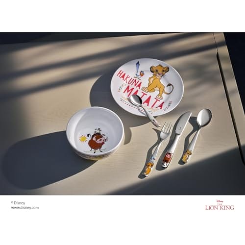 WMF Król Lew Zestaw Sztućców dla Dzieci nie tylko zachwyca wyglądem, ale również oferuje wiele korzyści. Wykonane z wysokiej jakości stali nierdzewnej, sztućce są trwałe, odporne na uszkodzenia i łatwe do czyszczenia. Ergonomiczny kształt uchwytów zapewnia wygodne trzymanie dla małych rączek, co pomaga w nauce samodzielnego jedzenia.