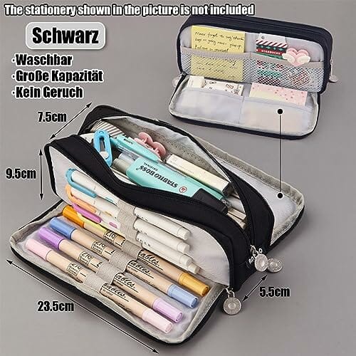 Piórnik dla nastolatek i dziewcząt, 3 przegródki, duża pojemność, do szkoły i biura, meteor, Plecak dziecięcy (czarny)