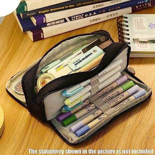 Konstrukcja z podwójnym: Konstrukcja z podwójnym otwarciem: piórnik z serii podwójnych otworów, 3 zamki błyskawiczne, wielofunkcyjne pudełko do przechowywania o dużej pojemności. Można go zainstalować i łatwo znaleźć, posortowane według kategorii.