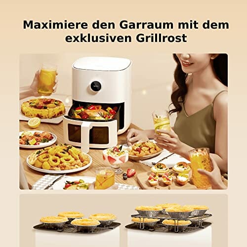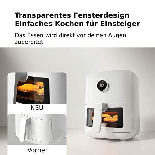 - Mehr als eine Fritteuse: Mit dem Mi Smart Air Fryer Pro 4L lassen sich Speisen fettarm frittieren und luftgaren. Außerdem kann das Gerät entfrosten;fermentieren und backen. In der Mi Home App stehen mehr als 100 leicht zu kochende Rezepte bereit.