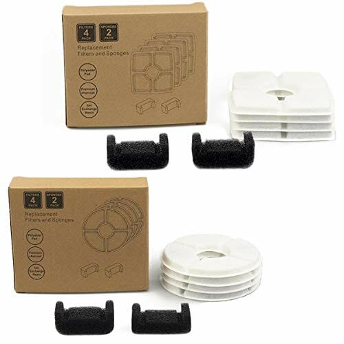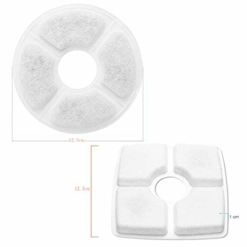 • 1. Zestaw zawiera: 4 kwadratowe filtry zastępcze do dozownika wody dla kota, 4 okrągłe filtry zapasowe do dozownika wody, 4 filtry gąbkowe.