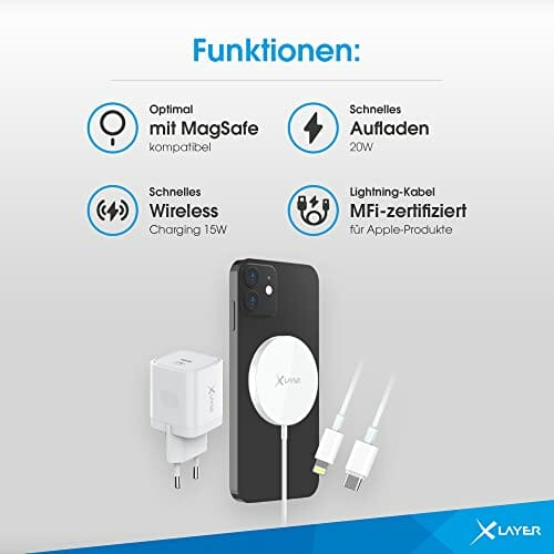 • Kompatybilność: magnetyczna bezprzewodowa ładowarka, wyprodukowana w Niemczech została zaprojektowana specjalnie do iPhone 12/13, iPhone 12/13 Mini, iPhone 12/13 Pro, iPhone 12/13 Pro Max i etui iPhone Mag-Safe.