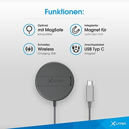 XLayer MagFix Pro Wireless Charging Stand magnetyczny 15 W, Space Grey – ustawiany USB-C bezprzewodowa, szybka ładowarka indukcyjna, kompatybilna z iPhone 12/13/14