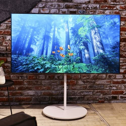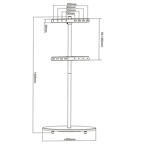 • Montaż: w zakres dostawy wchodzi standardowe materiały montażowe do telewizora. Stojak: obrotowy 360° / wysokość: 130 cm / średnica kolumny: 3,4 cm / Materiał kolumny: żelazo / Średnica podstawy: 60 cm / Materiał podstawy: drewno, żelazo, lakierowane / Kolor: biały matowy.