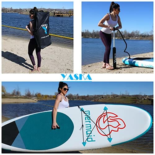 YASKA Nadmuchiwana deska SUP Paddling Board, ziarno z drewna, 320 x 81 x 15 cm, nośność 180 kg, w zestawie plecak, wiosło, pompka, leash, wodoszczelny worek do pakowania,