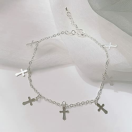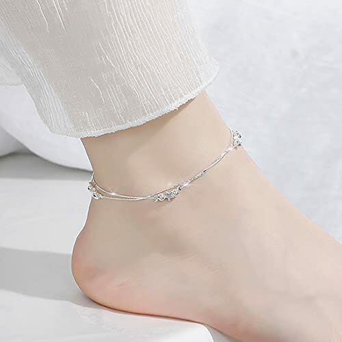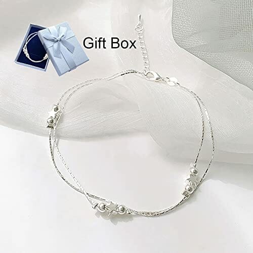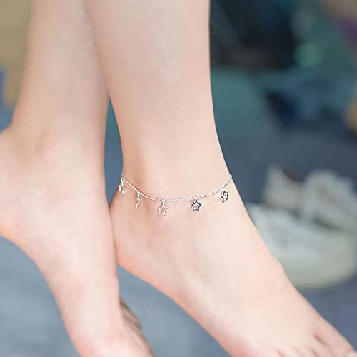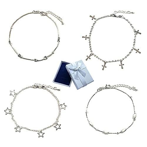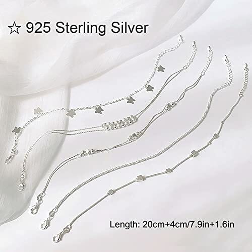 Yijunmca 4 PCS 925er Sterling Silber Fußkette mit Schmuckbox Damen Strand Knöchelkette Verstellbar Armband Vielfalt Anhänger Bracelet Doppelschicht Fußbändchen für Frauen Mädchen Schmuck Accessoire