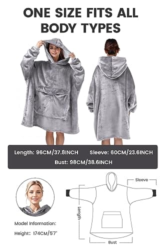 Koc bluza ponadwymiarowa z kapturem – miękki, ciepły i wygodny. Ta gigantyczna bluza z przodu ma dużą kieszeń, idealną dla kobiet, dziewcząt, dorosłych, mężczyzn, chłopców i dzieci. W kolorze jasnoszarym, dostępna w rozmiarze 4XL-Rozmiar Uniwersalny. Idealna na chłodne dni! Wykorzystaj atrybuty: [tytuł], Yikayin, Krótki opis: oraz Kategorie produktów: Bluzo-koce, aby uzyskać bogatszy kontekst.
