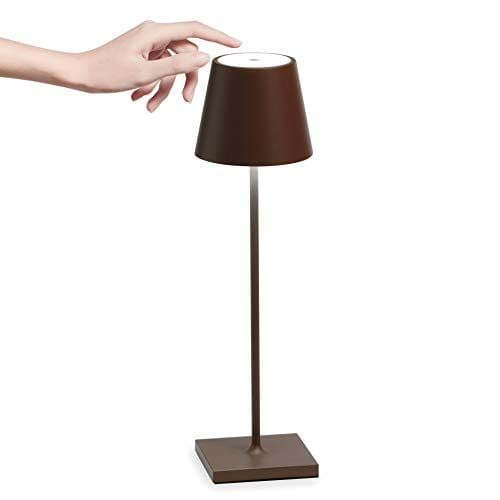 Zafferano, Lampa Poldina Pro, Bezprzewodowa Zasilana Akumulatorowo Lampa Stołowa ze Sterowaniem Dotykowym, Również do Użytku Zewnętrznego, Ściemniacz, 2200-3000 K, Wysokość 38 cm, Kolor Corten