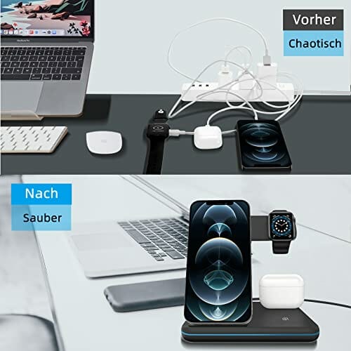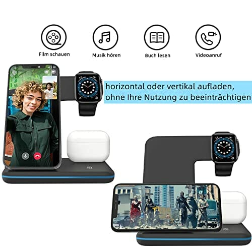 • 【Antypoślizgowa konstrukcja i wielofunkcyjna obserwacja】: Mocne mocowanie magnetyczne i stacja ładująca z antypoślizgową konstrukcją silikonową, dzięki czemu ładowarka nie przesuwa się ani nie obraca się, aby zapewnić ochronę telefonu podczas ładowania. Bezprzewodowa ładowarka 3 i 1 obsługuje pionowe lub poziome bezprzewodowe ładowanie z kątem nachylenia, co zapewnia lepsze wyświetlanie informacji wideo lub śledzenia podczas ładowania.