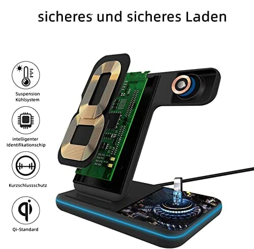 • 【Wielofunkcyjna】: szybka ładowarka Qi. Zabezpieczenie przed przeciążeniem, przepięciem i przegrzaniem oraz funkcja rozpoznawania ciał obcych można zapobiec przeładowaniu akumulatora urządzenia. Stacja ładująca jest wyposażona w otwór odpowietrzający, aby zapewnić bezpieczne ładowanie urządzenia.