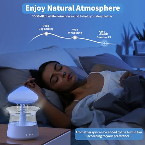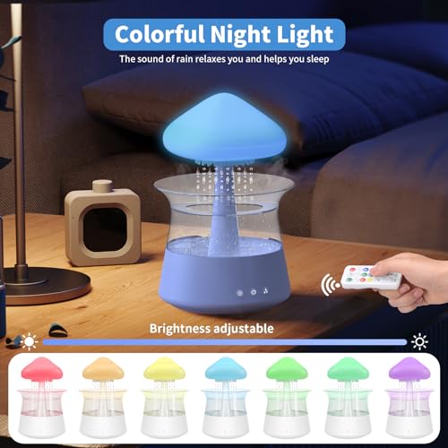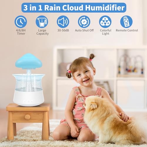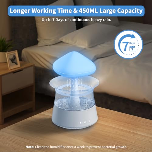 ZHOUZMIN Nawilżacz powietrza w chmurze 450 ml – 3 w 1, 7-kolorowe LED, odgłos deszczu, 7 dni pracy, łatwy do czyszczenia