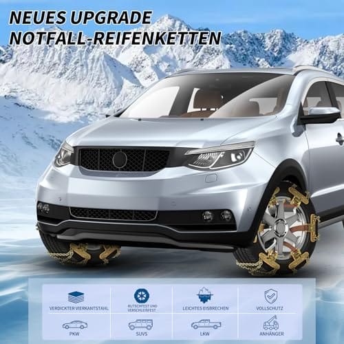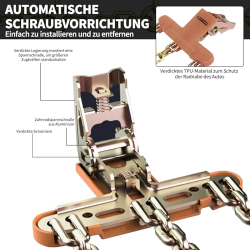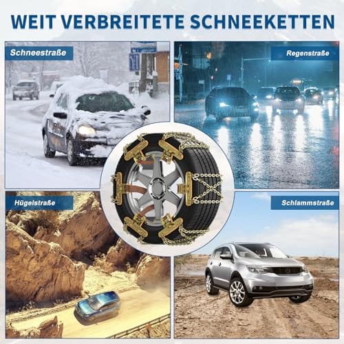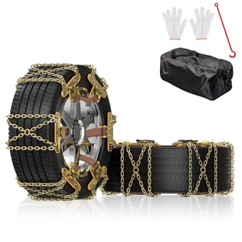 ZIKEBTUY Łańcuchy śniegowe antypoślizgowe regulowane – łatwy montaż, trwałe łańcuchy śniegowe do samochodów ciężarówek, SUV-ów i jezdni śniegu dróg.