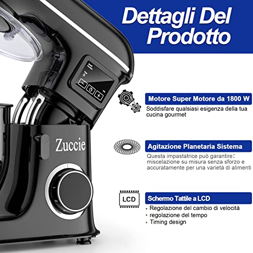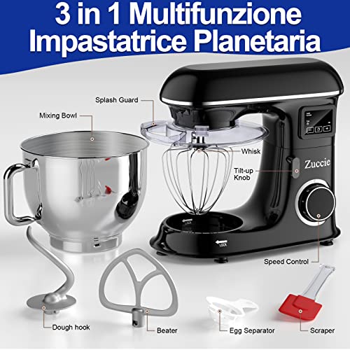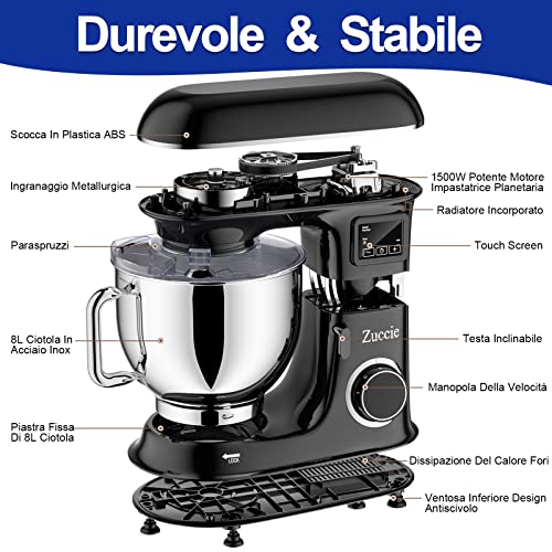 Zuccie Planetaria 1500W 8L Zagniatarka planetarna Robot – Potężny silnik, 4 akcesoria, duża pojemność