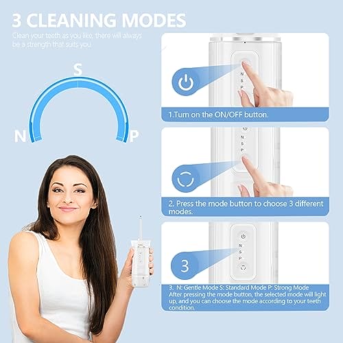 • Po prostu wydajny i bezpieczny – ten bezprzewodowy płetwy do wody jest bardzo łatwy w użyciu. Automatyczny 2-minutowy timer, funkcja pamięci pomaga utrzymać tryb pracy przy wcześniejszym użytkowaniu. Wysoka wydajność czyszczenia, różne tryby i dysze, spełnia różne potrzeby aplikacji, np. osoby z cienkimi/grubymi dziąsłami, przyzębia, nieprawidłowym położeniem zębów, okresem ortodontycznym lub okresem implantu zębów.